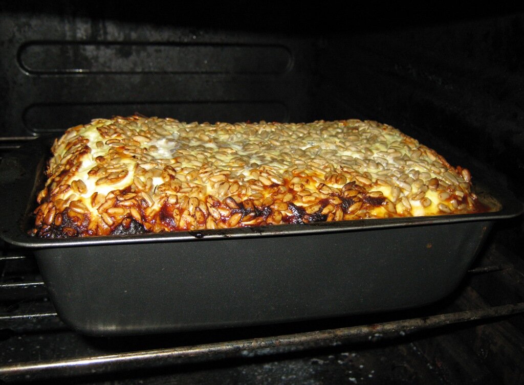 Форму можно смазать растительным маслом и (или) посыпать овсянкой, манной крупой или еще чем-то, чтобы запеканка не прилипла к форме. После этого ставим в духовку на 35-45 минут с температурой около 160-190 градусов (я через минут 30 переворачиваю формы другой стороной в духовке, чтобы она запекалась равномерно).