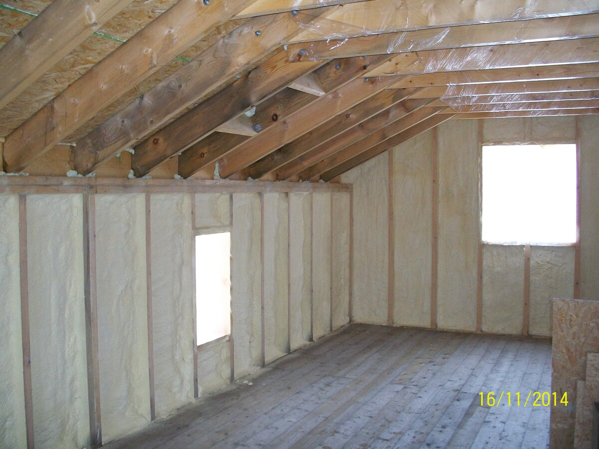 В предыдущем посте была небольшая теоретическая часть. Прочитайте, интересно. Эпопею с утеплением я не забуду никогда.) Так вот. Уже начав стройку нашего каркасного дома, я узнал про ППУ и решил, что утеплять будем только им. Я решил, в целях экономии, сделать так: купить компоненты, а потом найти кого то у кого есть установка для напыления, и напылить. Сразу скажу, что экономии большой не получилось. Было начало зимы 14 года. Мы всё ещё возились с обвязкой свай. Я нашёл одного производителя ППУ. Находится он в другом регионе. Они из-за зимы и не сезона снизили цены на компоненты. Как сейчас помню, цена была 100 с чем то рублей за кг(!!) Кстати. Вспомнил. Одна из причин, то что у нас дом имеет именно те размеры, которые имеет, это именно желание утеплить его ППУ. Объясню. ППУ производят в бочках по 200 л. Комплект из двух бочек весит примерно 450 кг. Если утеплять ППУ с плотностью примерно 30 кг/куб.м., то из одного комплекта можно получить примерно 15 кубов пены. (на самом деле мен