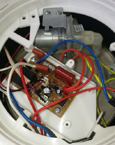 Проверяем дальше. В цепи питания пробит стабилитрон на 12В. Такого нет. Из платы донора (бп монитора) выпаиваем стабилитрон. Небольшой колхоз и вряд его на новое место. После всего проверил тены, 68 и 700 ом, исправны. Собираем и включаем в сеть. Всё работает. За кадром вскипятил 1,5 литра воды, после чего сработало включение поддержания температуры воды. Насос тоже раб