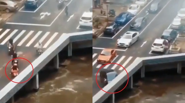 Внимание пользователей сети привлек новый видеоролик, на котором обнаружили загадочную иллюзию. В ролике показали, как проезжающий транспорт после поворота попросту исчезает, буквально растворяясь в воздухе. Новый вирусный ролик опубликовали в социальной сети Twitter, где он уже набрал более 400 тысяч просмотров. Автор публикации написал, что на видео можно заметить, как автомобильный трафик просто исчезает, и не стал объяснять, как именно это происходит. На видео пользователи видят, как машины и мотоциклы едут по мосту над рекой, и сворачивают прямо в стену, после чего полностью пропадают из виду. Данная иллюзия сбила с толку многих зрителей, которые не смогли объяснить происходящее. В комментариях пользователи назвали увиденное Бермудским треугольником, который известен тем, что там без вести пропадают многие корабли. Другие признались, что долгое время пытались понять, что именно происходит на видео, а увиденное даже заставило их почесать голову в недоумении. Некоторые и вовсе зая