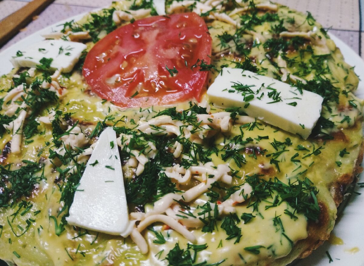 Ингредиенты: 4 – небольших кабачка; 2 – яйца; 200 г – майонеза (или сырного соуса); 100 г – сыра (можно твёрдого, но вкусно будет если взять плавленый сыр с каким-то вкусом); 2 – большие моркови; 2 – луковицы; Чеснок, соль, перец по вкусу; Мука – до консистенции теста как на оладьи; 2 – помидора. Приготовление: 1. Кабачки хорошо моем и очищаем от кожуры, трём на крупной тёрке. Потом посолить, поперчить и дать немного постоять. Когда кабачки хорошо пустят сок, нужно отжать и добавить яйца я мукой. Получилось тесто, которое мы в виде коржей обжариваем на разогретой сковороде с добавлением растительного масла. Масла добавлять не много, чтобы коржи не были жирными. 2. Начинка. Лук очищаем и мелко нарезаем, так же очищаем морковь и трём на крупной тёрке. Обжариваем до мягкости. Следим за тем, чтобы опять же было не много масло, иначе получится жирно очень. 3. Смешиваем отдельно майонез с чесноком и укропом. Можно взять готовый сырный соус, но так же добавляем чеснок и зелень. 4. Трём с