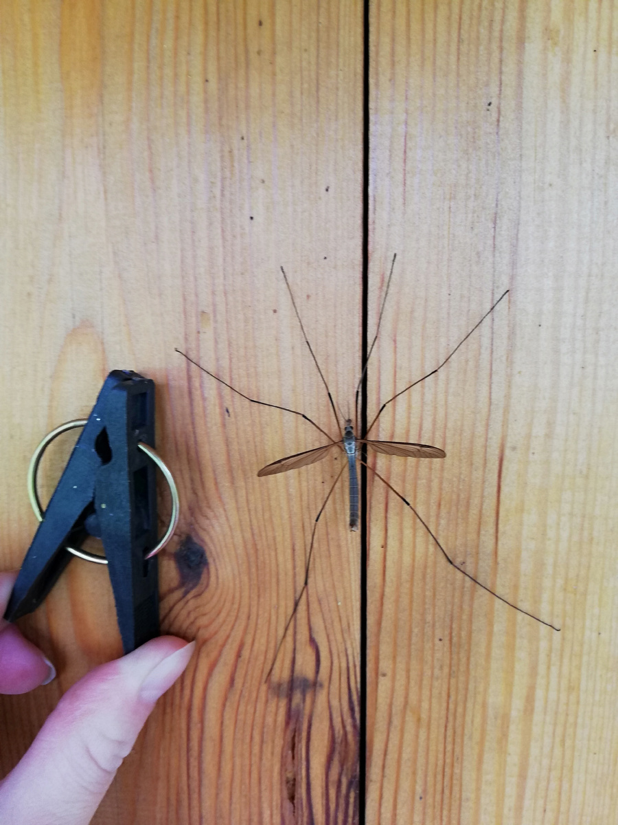 Развешивала белье на даче, и на тебе, такое чудо сидит спокойно на деревянной стене. Сразу стало не по себе. Кто это? Матка комариков? Носик свернут в трубочку, как у бабочки. На людей и животных не садиться. Подскажите, как называется этот гигантик.
