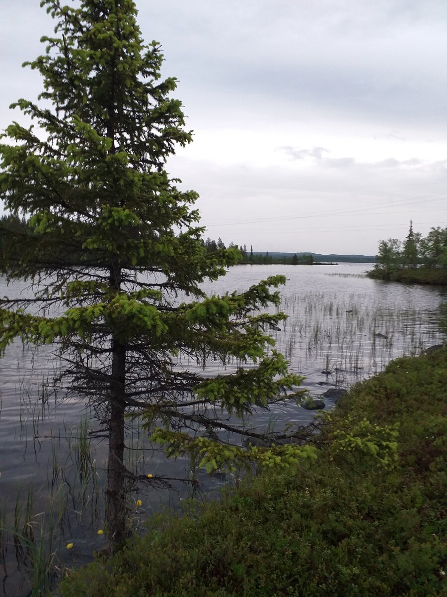 Немного отойду от общего развития событий, и расскажу вам о рыбалке на северных озерах. Дело в том, что от дома, в который мы переехали до ближайшего озера метров 500 и тяжело удержаться и не пойти на рыбалку. В первый же день я заехал в рыболовный магазин и попросил стартовый набор, узнал все особенности рыбалки, она как оказалось совершенно отличается от южной. Тут используют бомбарды на спиннингах, на юге донные снасти, но это не суть. До ближайшего города 32 км, отвозила меня закупаться женщина, зовут ее Ирина. Естественно у нас состоялась ознакомительная беседа. Как оказалось самому в этих краях опасно ходить по лесу, так как голодный год и медведи не стесняясь выходят к населению, что чревато последствиями, но желание порыбачить на новом месте оказалось больше и я все-таки пошёл. Иду я по лесу по тропинке, посмотрел по карте где озеро сужается, думаю ну там рыбка должна сидеть, иду смотрю больше по сторонам, чем под ноги и как вдруг я увидел нечто, огромные глаза смотрят на м
