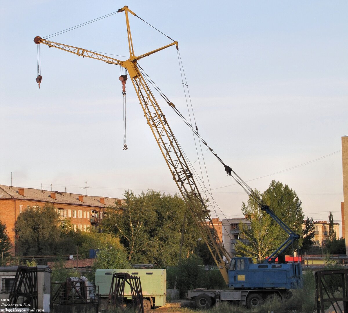 В СССР на нескольких заводах выпускалась линейка типовых пневмоколёсных кранов серии КС, грузоподъёмностью от 16 до 100 тонн. И если 16-тонные КС-4361А и 25-тонные КС-5363 были до недавнего времени распространены достаточно широко, а кое-где работают до сих пор, то более тяжёлые краны, выпущенные небольшими сериями, попадались крайне редко. Тем интереснее было встретить в 2010 году в Омске, в бодром рабочем состоянии, кран КС-6362 грузоподъёмностью 40 тонн, в конфигурации с 15-метровой стрелой и неуправляемым гуськом. Кран был выпущен на Одесском заводе тяжёлого краностроения им. Январского восстания в далёком теперь уже 1973 году, с серийным номером 24. Указан также вес машины - 48 тонн. Индекс модели расшифровывается следующим образом: "КС" - кран самоходный, далее цифры по порядку: "6" - размерная группа 40 тонн, "3" - пневмоколёсное шасси, "6" - со стрелой на канатой подвеске, "2" - номер модели. Что интересно, "набивщик" заводской таблички ошибся и перепутал местами цифры в ин