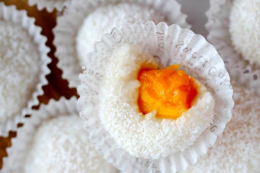 Номицы — китайские сладости из клейкой рисовой муки, довольно популярные в провинции Гуандун и Гонконге. Возможно, вы слышали о них под японским названием моти. Начинки могут быть самые разные от сладкой бобовой пасты до кусочков фруктов. Ингредиенты: 150 г – клейкой рисовой муки 40 г – кукурузного крахмала 30 г – сахарной пудры 240 мл – кокосового молока ½ стакана – кокосовой стружки кусочки манго для начинки 1 ст.л – растительного масла Приготовление: Приятного аппетита! Если вам понравилось, поставьте 👍, чтобы понимать предпочтения участников канала и быть более полезным. Делитесь понравившимися рецептами с друзьями, нажав кнопку "Поделиться".