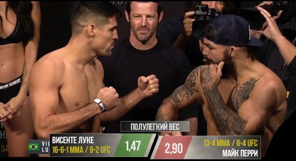 Что может дать бой каждому? Майк Перри. Пускай этот боец не в топ 15, но победа в этом бою 100% закинет его туда. Висенте Луке А Висенте ожидал очередной победы с превосходным шоу перед этим.Бой просто великолепный и все надежды оправданы с лихвой. 1 Раунд И сразу же мы можем увидеть размен от бойцов. Майк разряжается в блок, он вкладывается абсолютно в каждый удар, что прекрасно видно, но большинство из них попадает по защите. Однако, мне кажется, что Висенте и через блок чувствует всю мощь Перри. Сам же Луке больше работает вторым номером и несколько раз отлично пробил через руку. 2 Раунд Этот раунд прошел также ка ки предыдущий, вообще поединок шел так ожесточенно на протяжении всего времени. Бойцы зарубались как в последний раз. Перри работал немного активнее, но раскрывался при атаке пару раз, давая возможность Луке хорошо попадать. 3 Раунд Во время 3 раунда размены происходили и вовсе без защиты, это очень лютый бой. За минуту до конца колено от Висенты и нос Майка больше никогд
