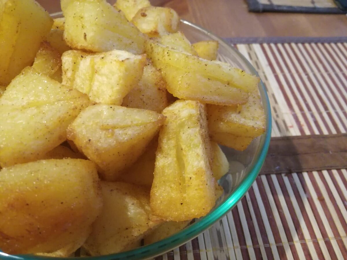 Положа руку на сердце, я не верила, что в духовке можно пригодовить вкусную картошку. Мясо, рыбу, овощи-да, но не этот любимый всеми корнеплод. Где бы я ни пробовала запеченную картошку (или готовила сама) это походило либо на пересушенные кусочки, либо на чуть подрумянившуюся вареную картошку. В этот раз мы ждали гостей и я решила попробовать рецепт моего обожаемого Акиса Петридзыкиса. А в гостях у нас был крестный нашей младшей дочки (шеф повар), который просто пришел в восторг от этой картошечки: хрустящая корочка и нежная мякоть внутри. И действительно, даже остывшая, картошка неверотно вкусна. Придется чуть повозиться, но результат того стоит: я управилась с двумя маленькими детьми. Итак, поехали! Нам понадобится: картофель 5-6 шт. 1 лимон соль, перец, 1\2 ч.л. паприки 3 ст.л. манной крупы (мелкой) 50 мл оливкового масла Способ приготовления: Картошку чистим и режем на кусочки вот такого размера (на фото) Секрет первый: на каждом кусочке картошки делаем неглубокие надрезы ножом,
