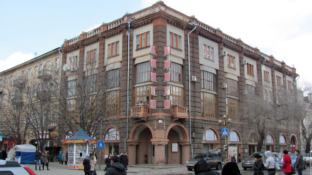 В 1934 г. саратовский институт планирования городов и сооружения зданий начал работу по созданию проекта «планировки центральной части Саратова». В его основе лежала идея превращения этой части города «в образцовый, отвечающий всем требованиям культурно-бытового обслуживания трудящихся – социалистический город». В соответствии с планом на углу улиц Республики (пр. Кирова) и Вольской в том же году началось строительство саратовского Дома книги (1).