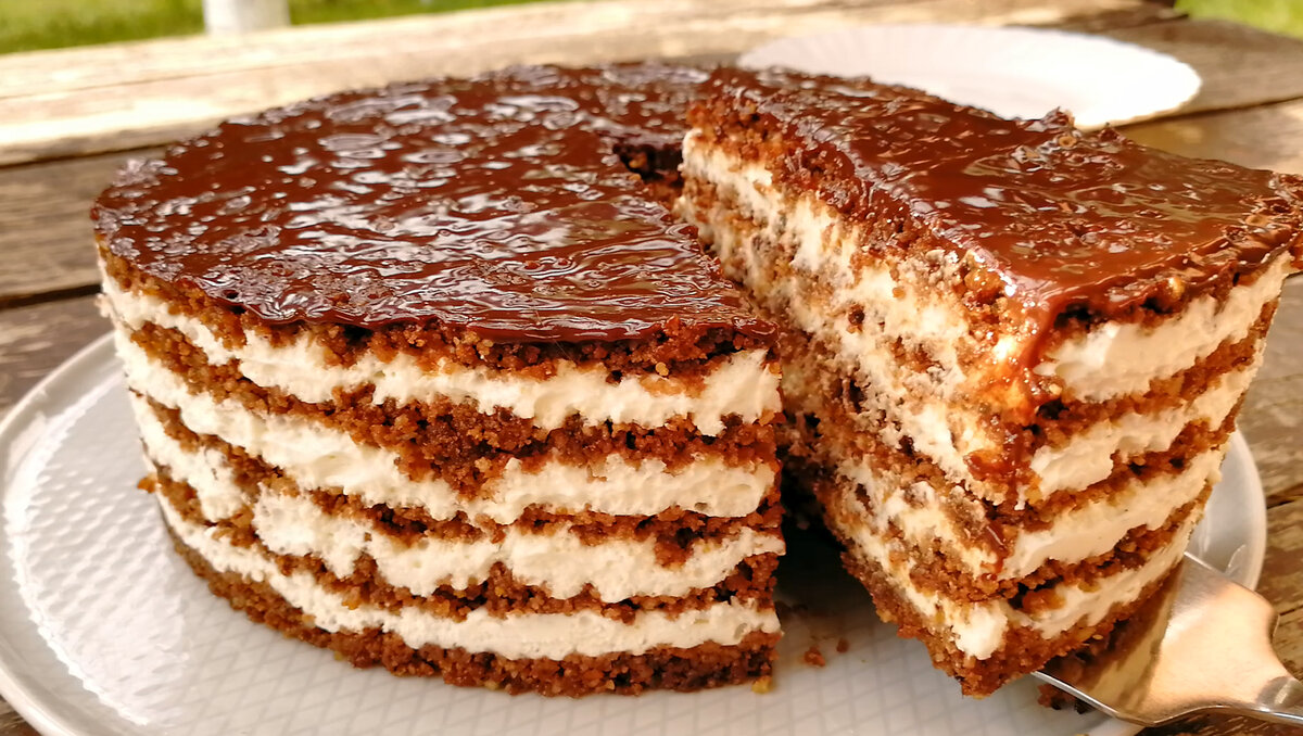 Восхитительно вкусный, необычный торт без выпечки. Нежный, тающий во рту, настоящее наслаждение! Попробуйте! За основу этого удивительного торта я возьму сухарики "Ванильные". Измельчаю сухарики в блендере. К сухарикам добавляю грецкие орехи 80-100 гр. Чернослив 80 гр., у меня он мягкий. Добавляю курагу 80 гр. Курагу я предварительно замочила в горячей воде на 10 минут. Еще раз хорошенько все измельчаем в блендере. Получается шикарная ароматная крошка. В 70 гр шоколада отправляю 70 гр сливочного масла. Отправляю в микроволновку и по 20-30 секунд растапливаю шоколад с маслом, каждый раз тщательно перемешивая. Растопленный шоколад отправляю к крошке. И хорошо перемешиваю ложкой. Коржи из этой крошки будут с ярким выраженным вкусом, к ним идеально подойдет творожно-сметанный крем. В миску кладу 250 гр сметаны, 80 гр сахара и 8 гр ванильного сахара. Слегка перемешаю лопаткой и отставлю в сторону, чтобы сахар растворился. Пока сахар растворяется подготовлю желатин. Одну чайную ложку желат