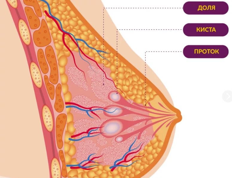 Что делать если женщина обнаружила у себя уплотнение в молочной железе? Киста молочной железы является предоухолевым состоянием у женщины. В случае отсутствия лечения на этом месте может возникнуть злокачественное образование. Киста представляет собой капсулу с жидким содержимым. В группу риска входят женщины фертильного возраста и имеющие гинекологические болезни. Киста может вызывать воспаление. При гнойном образовании может возникнуть абсцесс. Важно знать, что киста груди сопровождается болезненными ощущениями перед месячными. Кисту молочной железы могут спровоцировать: Стрессовые или конфликтные ситуации Воспаление молочной железы Нарушение в репродуктивной системе Гинекологические болезни Болезни щитовидной железы Сахарный диабет Заболевания печени Травматические повреждения Каждая женщина должна самостоятельно осматривать молочные железы. Делать это нужно перед зеркалом. Необходимо осмотреть симметричность, прощупать на предмет уплотнений от соска к периферии. Диагностика: Осмот