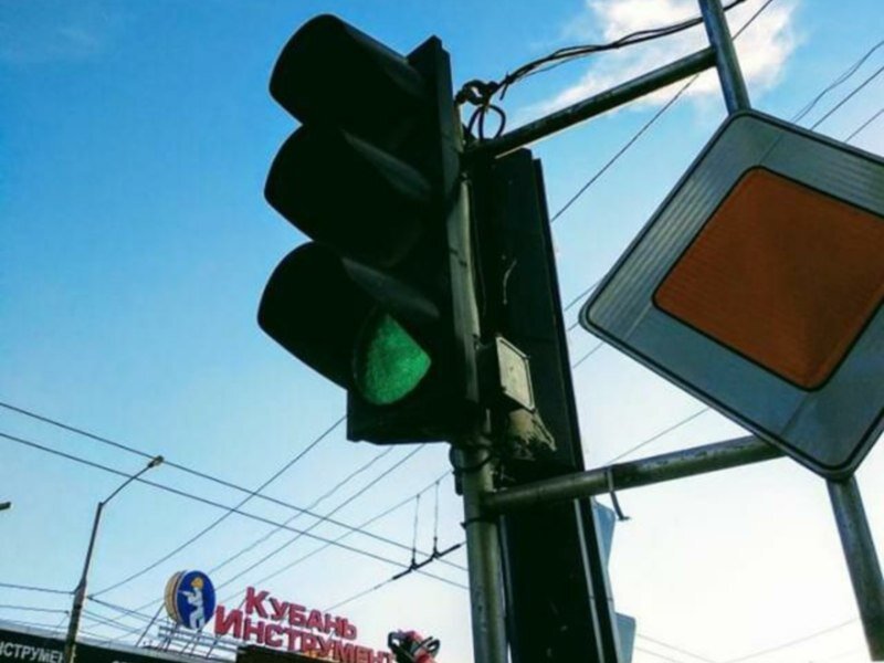 Для постоянного поворота направо на двух перекрестках Краснодара вместо трафаретов поставят дополнительные секции светофоров