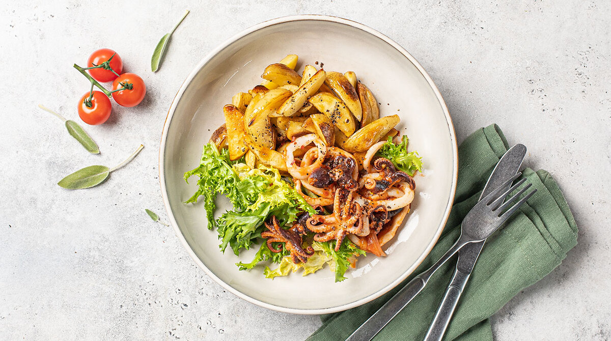 Сегодня предлагаем замечательное блюдо - осьминоги с картофелем.