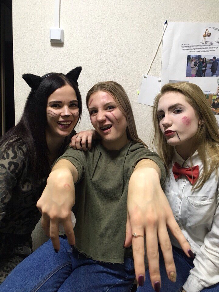 Праздник, конечно, не наш, но как пел Шнур «главное начать, что-то отмечать». Для меня идея отметить Хэллоуин - был повод собрать всех своих друзей, ну и получилось что-то нереально крутое. На нашем празднике собрались две женщины-кошки, зомби, хач-трюкач, пила, ведьмочки и три Стаса Михайлова (нет, они не договаривались, а пришли в деловых костюмах, расстегнутых верхних пуговицах от рубашки и ярко сияющих крестах). Начали за здравие. Кушали, пили, общались. А закончили жесткими дебатами, касательно импровизированной игры Alias. Денег на игру у нас не было, чтобы купить в магазине, мы скачали карточки для неё в интернете. Получилось забавно. Игроки делятся на команды, в каждой выбирается козёл отпущения, который должен изобразить без помощи слов определённый термин. Ну, многочлен, как вы поняли уже, угадали мальчики, которые в школьные годы особо не были сильны в математике. Вообще, придумывать игры из ничего - у нас всегда получалось. Например, мы пробовали изображать героев фил