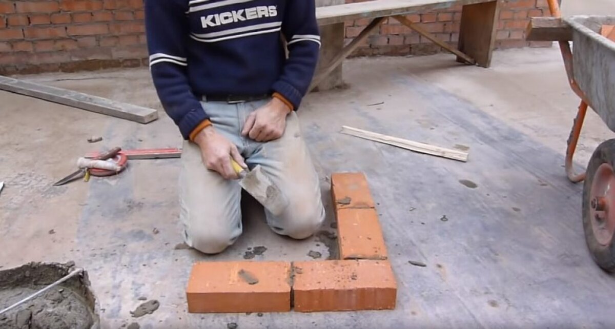 Удары мастерком по торцу стенового кирпича смещают угловой кирпич