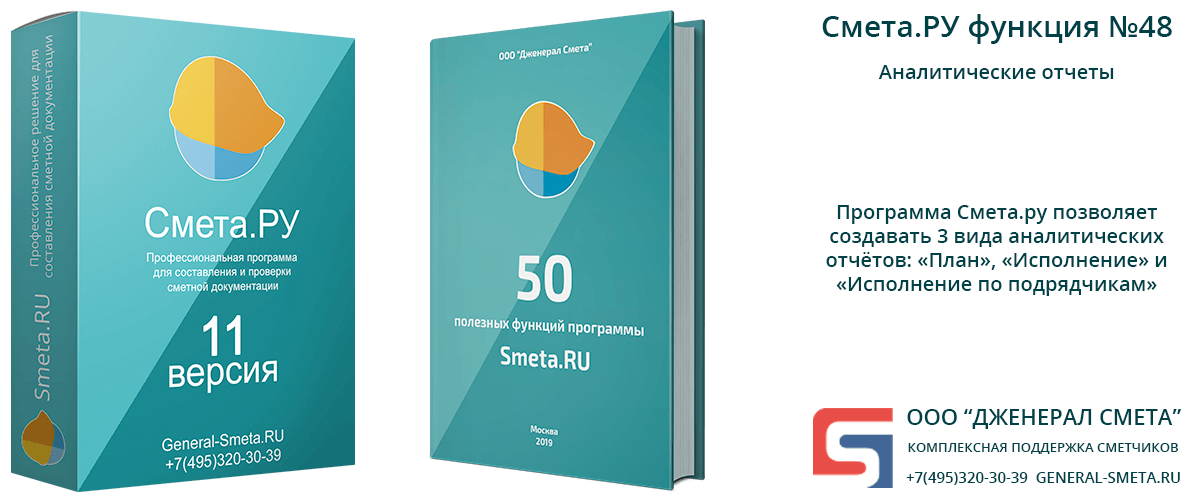 Программа Смета.ру позволяет создавать 3 вида аналитических отчётов: «План», «Исполнение» и «Исполнение по подрядчикам».