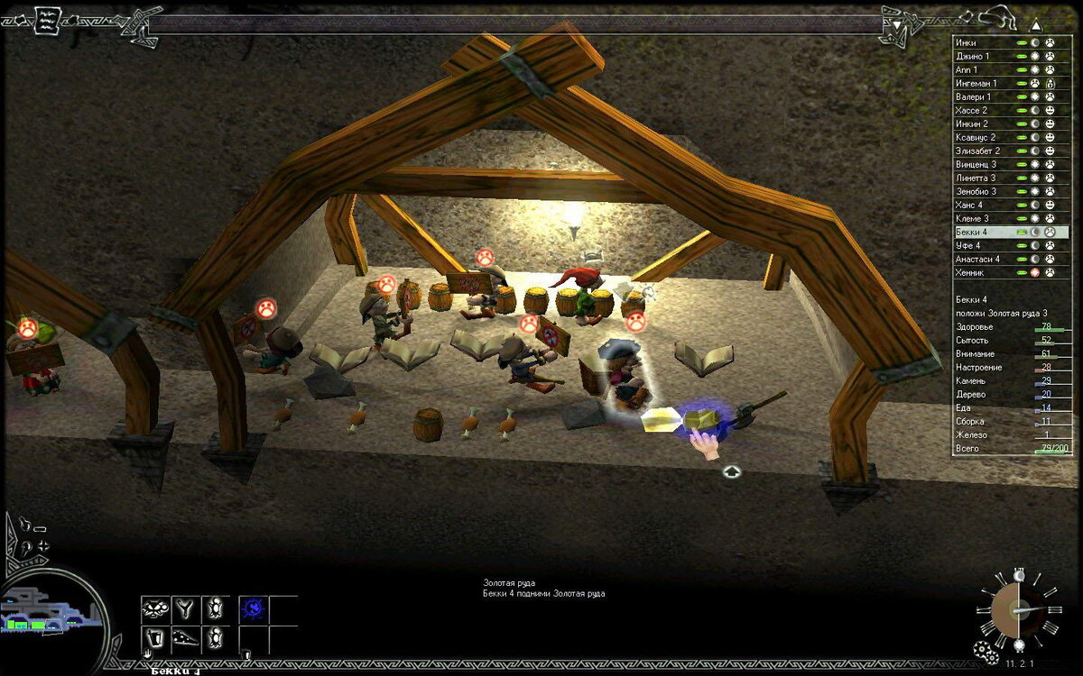 1. Wiggles. Дата выхода: 2001 год. Вид с боку (с реализацией 3d) для современных игр означает только платформер или аркадную линейку в стиле «Беги». Но в «Гномах» вы этого не найдете. Здесь нам предлагают сыграть в экономическую стратегию с элементами выживания и Sims. Однако с управлением, как и во всех сложно-реализованных играх того времени, приключилась беда (по крайней мере для меня оно было сильно замысловатым). В данной игре присутствует очень много параметров (если сравнивать ее с другими играми того времени). Голод, возраст, отношение с другими гномами (мать, сын, отец), усталость (точнее время работы и отдыха), сила, ловкость, боевые навыки, мастерство, смена дня и ночи, в общем, никакая из игр не могла похвастаться таким количеством параметров в игре. Но тут же и есть минусы: все это устроено так, что невозможно (новичку) уследить за всем. Гномы могут похвастать своей продолжительностью игры. Так, например, на первый уровень (где нужно было всего лишь найти первое коль