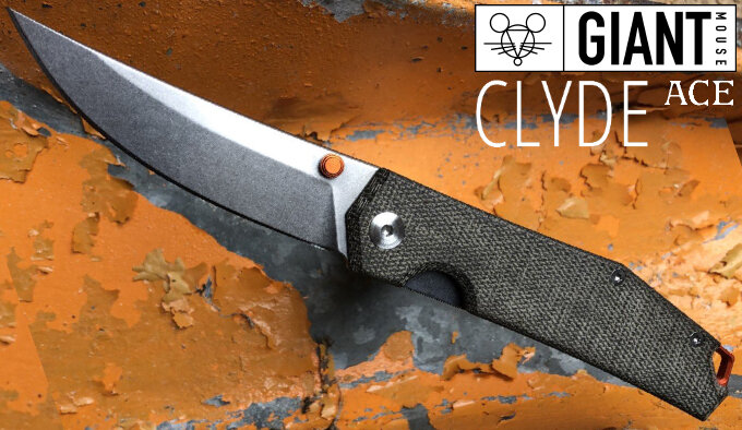 GiantMouse дополнили утилитарную линейку ножей ACE для повседневной переноски и эксплуатации (EDC) новой складной моделью Clyde в двух вариантах исполнения накладных панелей рукоятки и "шпенька". Форма ножа, навеянная "Норвежскими, Японскими и Персидскими" мотивами, оснащается изогнутым 7,7 см симметричным клинком формы Trailing Point из стали Elmax, установленным на ось с медными шайбами. Плавно загибающееся лезвие переходит в высокие спуски для удобства работы с объемными предметами и затем в сужающийся обух, оснащенный съемным "шпеньком" для открытия большим пальцем. Относительно прямолинейная составная рукоятка имеет односторонний загиб под указательный палец, упрощающий нажатие на стальную пластину внутреннего замка, и легкий угол на "спинке" под ладонь. Боковые панели рукоятки из композита Micarta зеленого цвета с противоскользящей текстурой "парусины" или черного G10 эффектно контрастируют с проставкой "плашек", совмещенной с крепежным отверстием под страховочный ремень, темляк