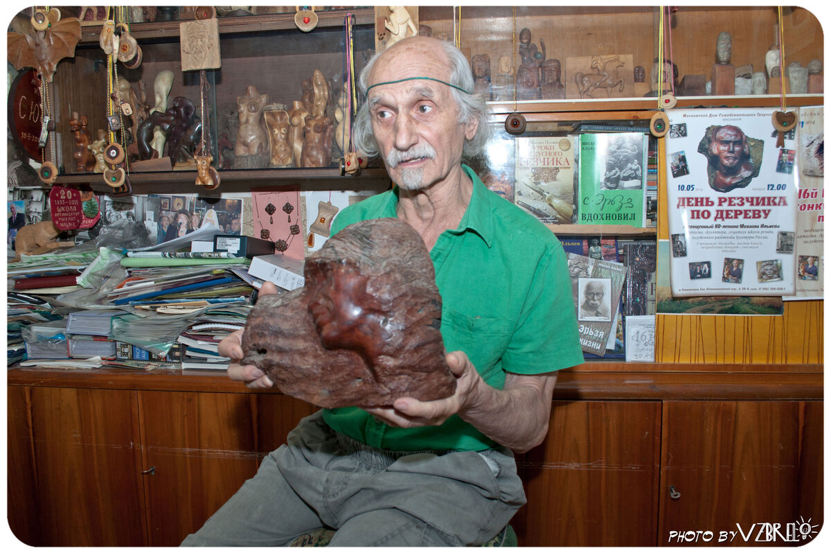 Начало тут, продолжение: Я был на гастролях в Киргизии, в городе Фрунзе (сейчас Бишкек). Уже увлекался тогда резьбой, но, там был как артист эстрады. В городе нашел мастерские скульпторов, пообщаться, поучиться и они мне подсказали: "Знаешь, есть такой скульптор, Эрьзя, найдешь его работы, посмотришь". И тут же я через неделю покупаю в ларьке книжном набор открыток. Я как увидел, так в душу вошло! Клянусь, увидел - мое. Это дало мощный толчок изучать серьезнее его пластику, и все пошло.