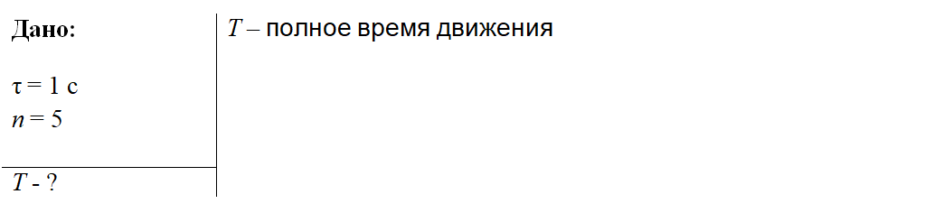Полное условие задачи Тело, свободно падающее с некоторой высоты без начальной скорости, за время в 1 с после начала движения проходит путь в п = 5 раз меньший, чем за такой же промежуток времени в конце движения. Найдите полное время движения. Краткое условие задачи Решение задачи 1) Свободно падающее тело движется равноускоренно с ускорением свободного падения g. В системе отсчета, связанной с землей (см. рис.), при указанных начальных условиях закон движения тела с постоянным ускорением (зависимость координаты от времени) имеет вид: 2) Положение точки в момент времени отмечено на рисунке координатой а в момент времени отмечено координатой Здесь T – полное время движения и Исходя из выше сказанного, можно составить следующую систему уравнений: 3) Путь s, пройденный за последнюю секунду равен В соответствии с условием задачи путь s, пройденный за последнюю секунду в n раз больше пути, пройденного за первую секунду, который равен То есть Или После сокращения получаем Отсюда на