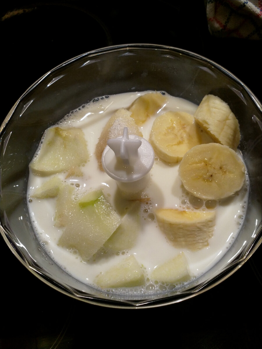 Всем привет! За окошком светит солнышко, замечательное настроение, захотелось приготовить вкусный и полезный напиток. Сразу же в голову пришла мысль о смузи. Сегодня будем готовить бананово-яблочный смузи Ингредиенты: Банан - 1 крупный Зелёное яблоко - 1 крупное Молоко - 250 мл Сахар - 2 ст.л Приготовление: Фрукты моем, очищаем от кожуры, у яблока удаляем сердцевину. Все ингредиенты помещаем в чашу. Измельчаем блендером, пока консистенция не станет однородной. Смузи готов, перелмваем в стаканы. У меня получилось 3 небольших стакана. Приятного аппетита! P/s: если вам понравился рецепт, ставьте лайки, добавляйте комментарии. Подписывайтесь на мой канал. Впереди ещё много интересных рецептов!