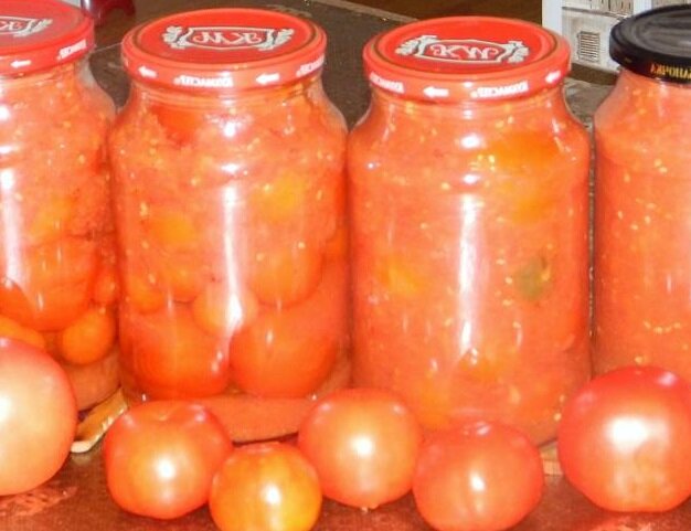 В прошлом году мы сделали много разных заготовок из помидоров, но именно эти получили самую высокую оценку у наших гостей, когда мы открыли одну из баночек. Это были помидоры в собственном соку. Самое интересное, что рецепт этот прост до безобразия, а томаты я использовала те, которые не годились для других заготовок. В основе рецепта томатный сок и целые, или половинки томатов. Также я добавляла чеснок, сладкий болгарский перец. Специи, такие как душистый и черный перец я не клала, но если любите пряный аромат, то их можно добавить, это разнообразит вкус. Лучше всего для консервирования подходят помидоры сливовидной или перцевидной формы, или просто круглые, но не крупные, они должны быть упругими, плотными, спелые со сладким вкусом. Читая другие рецепты, нашла интересный способ консервирования в собственном соку, но повозиться с ним придется подольше. Рекомендуют снимать кожицу с томатов, но думаю, это имеет смысл, если использовать "некондиционные " томаты, вид у некоторых не о