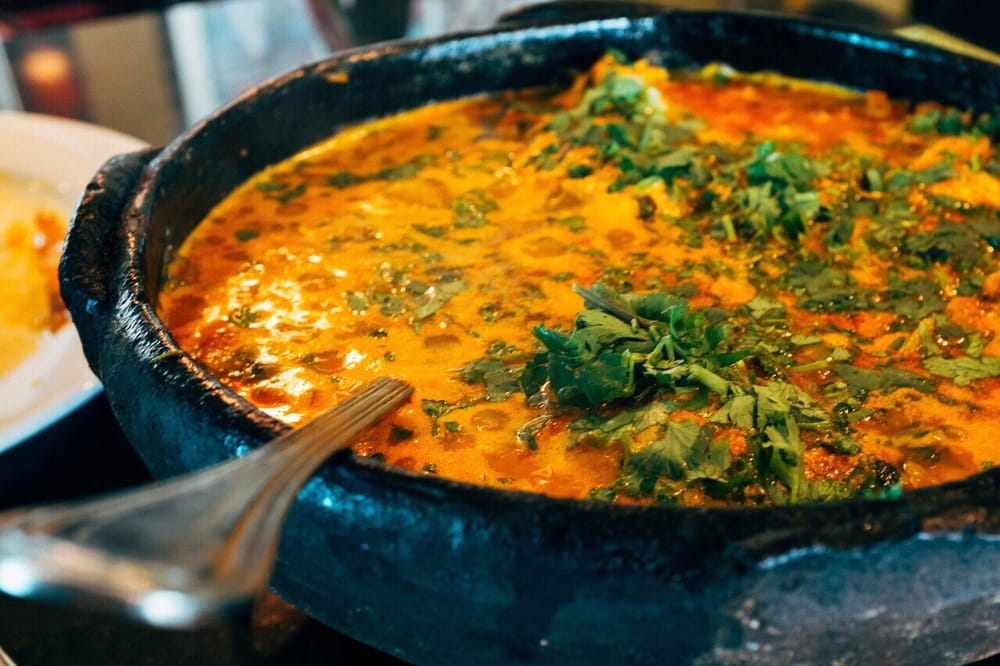 Мокека Я постоянно пытаюсь найти для бразильских аналоги наших, отечественных, блюд. Не по вкусу или виду, а по распространенности, популярности, частоте приготовления. Мокеку я бы сравнила с мясом по-французски. Точнее, с мясом, или курицей, или рыбой, приготовленной таким способом. Все же помнят: если гости скоро в доме, если надо что-то приготовить быстро и экономно, то готовим «по-французски»… А в Бразилии хозяйки в этом случае готовят мокеку. Точно так же – с мясом, с курицей, с рыбой – без разницы. Тут важен принцип. И я вам сейчас его расскажу. Ингредиенты: до 2 кг филе курицы, свинины, белой рыбы (палтуса или трески), морепродуктов (креветок, мидий, рапанов и т.п.) 3–4 зубчика чеснока 4 ст. л. сока лимона или лайма 2 ст. л. оливкового масла 1½ стакана нарезанного зеленого лука 1 луковица 1 красный сладкий перец 1 желтый сладкий перец 1 ст. л. молотой паприки 1 большой пучок кинзы 1 л кокосового молока 2 стакана нарезанных помидоров отварной рис для подачи соль и перец по
