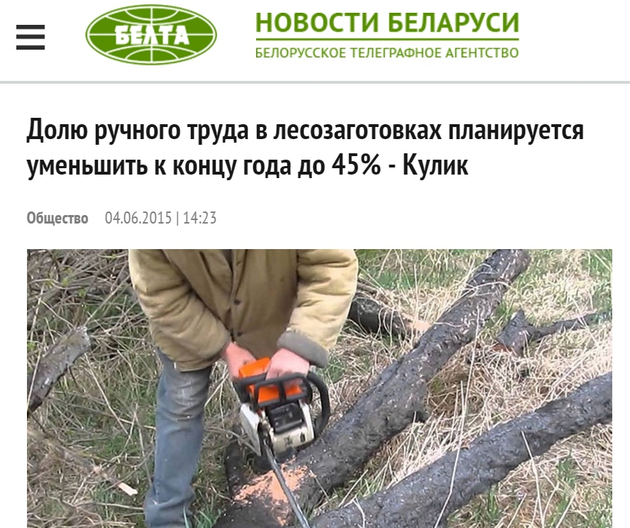 ✅ В 2015 г. заместитель министра лесного хозяйства Александр Кулик рассказал о доля ручного труда в лесозаготовках
