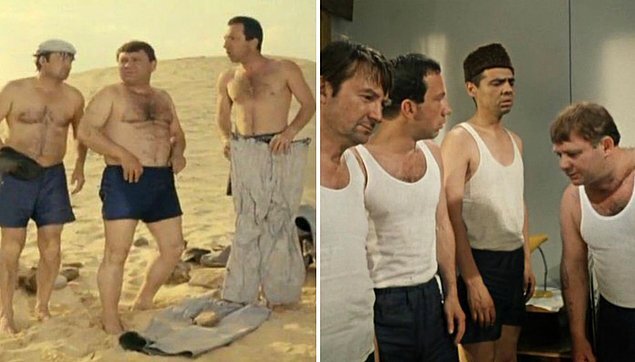 1.У героев фильма «Джентельмены удачи» после того как он были в машине с цементом вся одежда была испорчена,но вот трусы и майки как с прилавка магазина. 2.В фильме «Большая перемена» у Ганжи забинтована сначала левая рука,в другом кадре правая. 3.В фильме «Кавказская пленница» Эдик пытался вытащить шприц из Бывалого ,он поплевал на руки сквозь стерильную повязку,выглядит странно. 4.В фильме «Служебный роман»когда меняется план ,то расстегнутый пиджак Людмилы сам застегивается на все пуговицы. 5. Ошибка в титрах фильма «Ирония судьбы»,вряд ли вы их заметили.