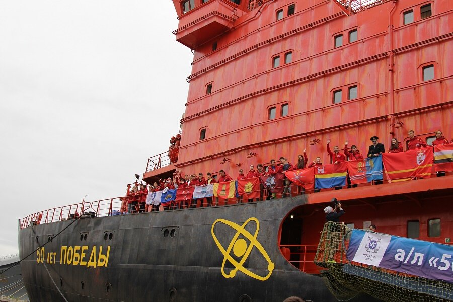 Атомный ледокол «50 лет Победы» вышел в рейс на Северный полюс, на его борту находятся 70 детей из самых разных регионов России, от Екатеринбурга до Мурманска. Это представители Российского движения школьников, воспитанники образовательного центра «Сириус», ребята из проекта «Школа Росатома» и активные участники мероприятий сети информационных центров по атомной энергии. Школьники выступают в качестве послов своих регионов – каждая делегация везет на Северный полюс флаг своей малой Родины. Основная цель рейса — просветительская: участники экспедиции узнают об истории атомного ледокольного флота, о нужных на ледоколе профессиях, о проблемах сохранения Арктики и смогут творчески освоить полученные знания. Для этого на борту ледокола будет работать совместная команда опытных педагогов проекта «Школа Росатома» и сети информационных центров по атомной энергии. В качестве наставников для ребят выступят такие звезды, как продюсер и телеведущий Валдис Пельш, актрисы Елена Яковлева и Анаста