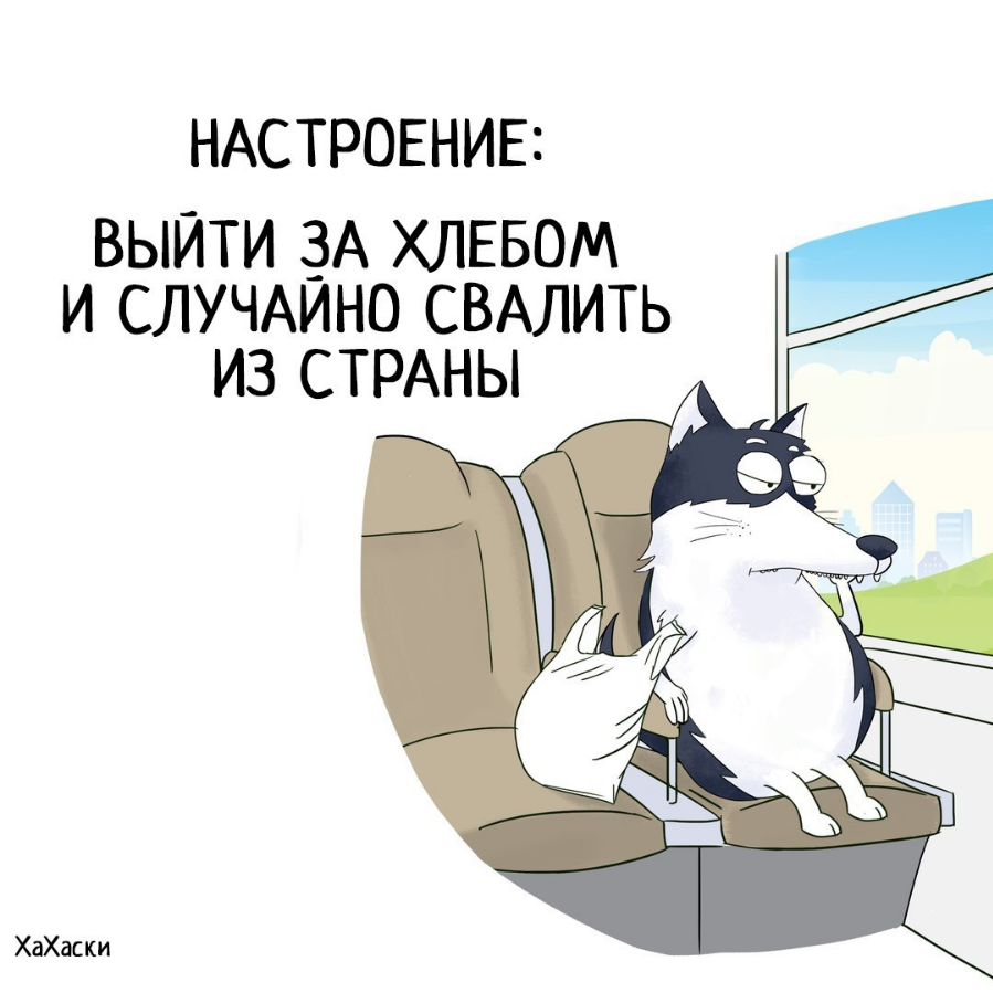 Друзья, продолжаем знакомиться с веселыми комиксами со всего света. Сегодня я предлагаю вам окунуться в мир пушистых милах - собак породы хаски. Авторы комиксов перенесли своих персонажей в наш мир и очеловечили их. С героями комиксов Хахаски происходят типичные для нас события - выбор подарков на праздник, дорожные пробки, встреча с родственниками супруга и тому подобное. Ситуации бывают уместные и не очень, но неунывающие псы выходят из них блестящее или с высокой долей самоиронии. Надеюсь позабавить вас своими комментариями и доставить удовольствие от просмотра. Ох, уж эта осенняя хандра, никак не отпускает. Пойду за хлебом, куплю винца. Но если применить недюжие маркетинговые методы и приемы, можно даже начать продавать курс по "уплощению живота за счет статического лежания" Лето! Милое лето! Как же я скучаю :) Чтобы не было так грустно, нужно завести еще одного жирненького, например, кота. С ним и теплее так-то. Ну да, один веселый друг явно лучше грустных двух. И приятное ощущ