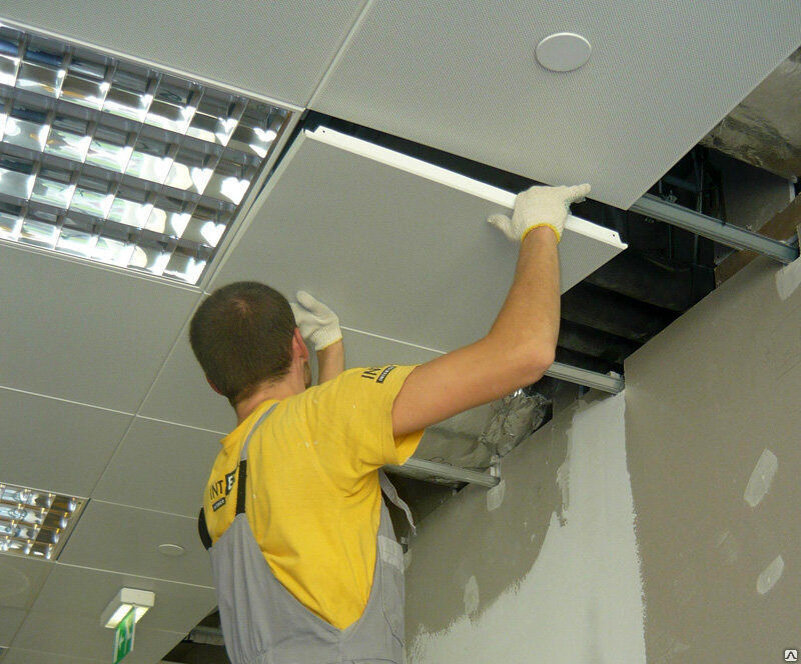 Перед монтажом обязательно нужно подсчитать, какие материалы и в каком количестве необходимо закупать. В случае с потолком Армстронг здесь есть некоторые особенности. Как известно, данный вид подвесного потолка состоит из большого количества панелей, и сами панели крепятся к несущему профилю. Подсчитайте, какие профили и в каком количестве необходимы для вашего помещения, а также количество плит, которые вы собираетесь установить. Конструкция потолка Необходимые инструменты Пошаговая инструкция монтажа После того как вы закупили все необходимые материалы и инструменты, необходимо произвести разметку потолка. При помощи уровня определите самые низкие точки потолка. Это необходимо для того, чтобы рассчитать расстояние от подвесного потолка до самой нижней точки фактического потолка. Как правило, самая низкая точка является одним из углов.