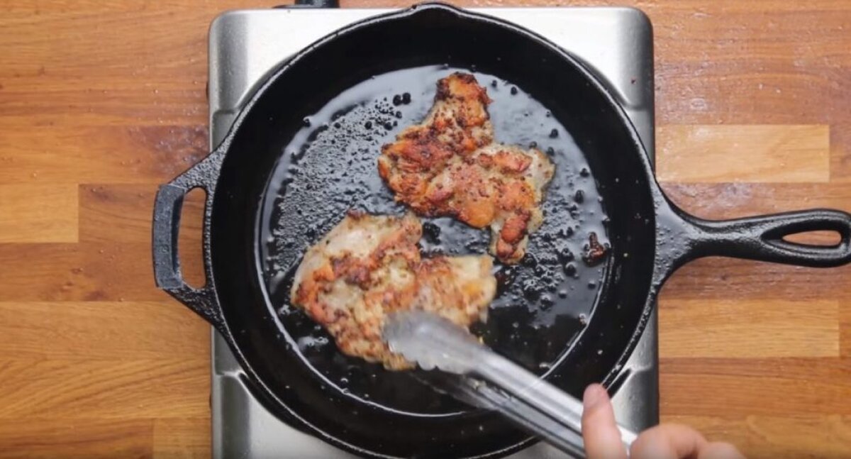 Сковороду необходимо нагреть до температуры, превышающей температуру кипения масла, чтобы разрушающаяся полимеризированная плёнка вступила в реакцию с железом на поверхности и образовала тонкий и прочный защитный слой.