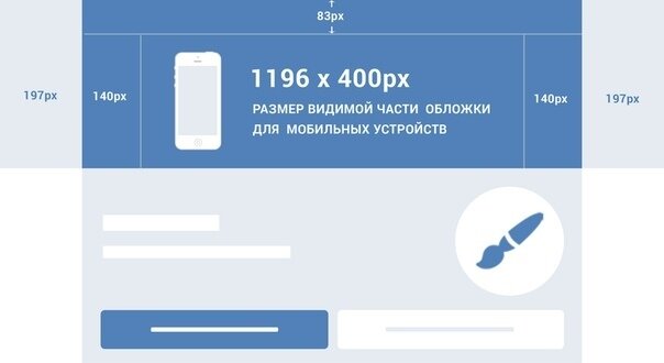 Размер загружаемой обложки для мобильных устройств такой же, как обложки для PC - 1590 на 400 пикселей, т.е. загружать вам все равно придется такую же обложку, как и для PC. Но разница между мобильной версией и PC в том, что в мобильной версии видна только часть обложки с размером 1196 на 400 пикселей, а края по 197px не видны вообще. Еще нужно учитывать бар с иконками (время, уровень заряда,уровень сети и т.д.) в верхней видимой части обложки, который может занимать 83px и боковые кнопки приложения, которые также могут занимать 140px по краям.