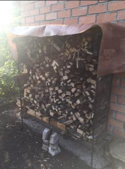 Сделать дровницу можно из дерева, а можно сварить из старой арматуры, сверху накрыть линолеумом или сделать самому накидку.