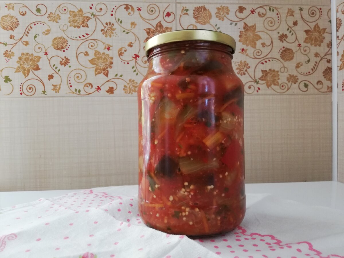 Лето катится к закату. Постараемся сохранить его в банках. Предлагаю приготовить салат из баклажан Бакат Для приготовления нам понадобится: Баклажаны 2кг Помидоры 2кг Слалкий перец 1кг Морковь 0,5кг Петрушка 1 небольшой пучок Горький перец 1шт Чеснок 1-2 головки Сахар 160гр Соль 60гр Растительное масло 1стакан Уксус 9% 130мл Баклажаны режем брусочками, замачиваем в подсоленной воде. Промываем. Сладкий перец режем крупными квадратиками Морковь трём на крупной терке Помидоры, острый перец, чеснок измельчаем мясорубкой или блендером. Петрушку мелко нарезать. Перемолотые помидоры доводим до кипения, добавляем соль, сахар, уксус и масло. Даём закипеть. Добавляем овощи, накрываем крышкой и варим на среднем огне 35минут. Добавляем петрушку и оставляем кипеть ещё 5 минут. Пока наши овощи варились мы подготовили банки и простеризовали их. Из данного количества овощей получается примерно 5 литров салата. Разливаем салат по баночкам и даём остыть. Приятного аппетита!