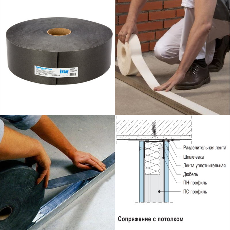 В технологических картах производителей гипсокартона и профилей для него присутствует уплотнительная лента. По правилам монтажа она должна наклеиваться на профиль, который примыкает к несущим конструкциям: стенам, потолку и полу. Для чего же нужна уплотнительная лента, какую функцию она выполняет?