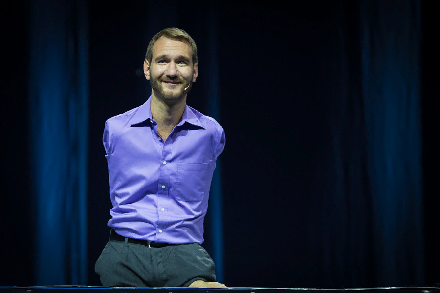 «Когда мне было 8 лет, я думал, что я никогда не женюсь, что у меня никогда не будет работы, никогда не будет цели в жизни, — говорит Ник. — Каким мужем я могу быть, если я даже не смогу держать жену за руку? Моя жизнь не была лёгкой. Долгое время я чувствовал себя в состоянии депрессии. В возрасте 10 лет я пытался покончить с собой. Я не видел перед собой никакой надежды. Меня остановила лишь мысль о том, что родители очень любят меня, и я их люблю. Что если бы я сдался? Представляете, сколько бы я потерял? Посмотрите, сколько сейчас людей могут получить пользу от того, что я здесь. У меня никогда не было бы моего сына, никогда не было бы моей жены. А они стоят того, чтобы жить ради них и умереть ради них. Я люблю свою жену. Но я чуть было не сдался. Поэтому не сдавайтесь».