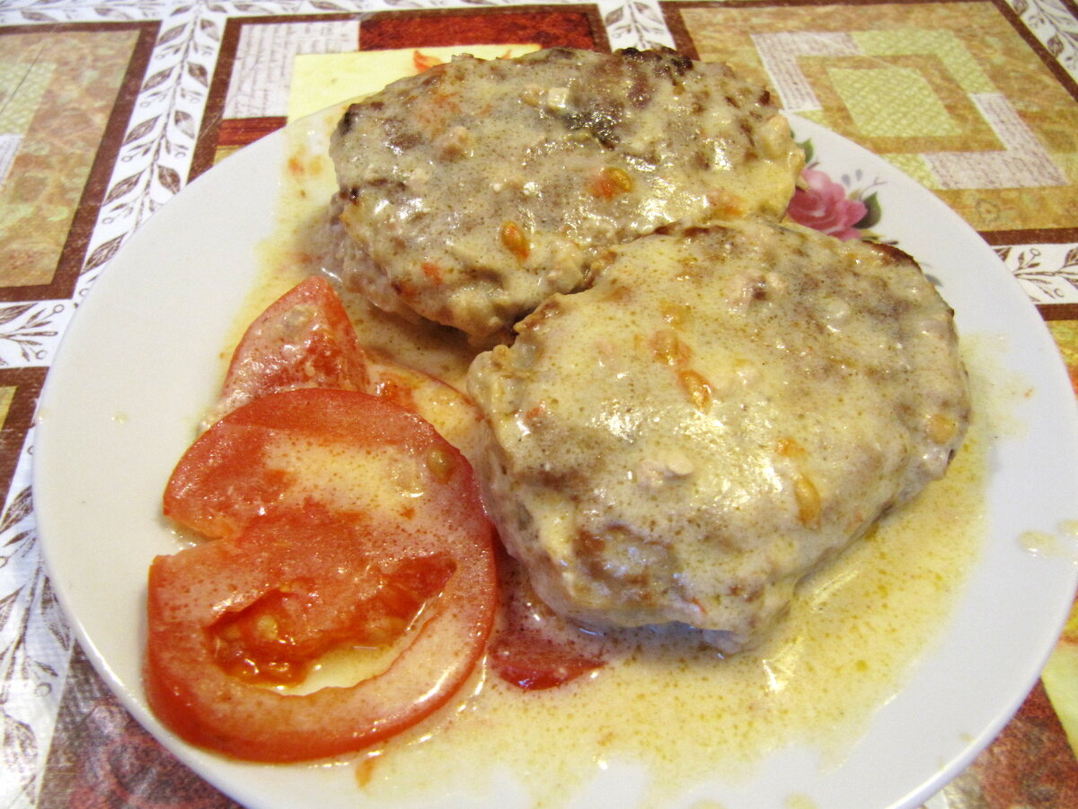 Очень вкусные котлеты с гречкой, готовить их просто, а улетают они еще быстрее. Что потребуется для котлет: 500 г свиного фарша 0,5 стакана сырой гречневой крупы 1 лук репчатый 2 яйца 70 г моцареллы(можно заменить на другой) соль черный перец пряности по желанию 2 лавровых листика немного муки для обваливания котлет Сначала отвариваю гречку практически до готовности. В свиной фарш добавляю отварную гречку, соль, перец. Перемешиваю и добавляю нарезанный мелко лук и сырые яйца. Опять же хорошо перемешиваю. Сыр режу ломтиками, размером немного меньше будущей котлеты. Вкуснее всего получается с сыром моцарелла (тот, который для пиццы), но можно взять и любой другой сыр. Формую котлетки, в серединку каждой котлеты кладу кусочек сыра. Обязательно нужно запанировать котлетки в муке, так они лучше будут держать форму. Теперь следует их немного обжарить. При переворачивании будьте очень аккуратны, котлетки очень нежные. Для соуса потребуется: 25 г сливочного масла 1,5 ст.л. муки 1 стак