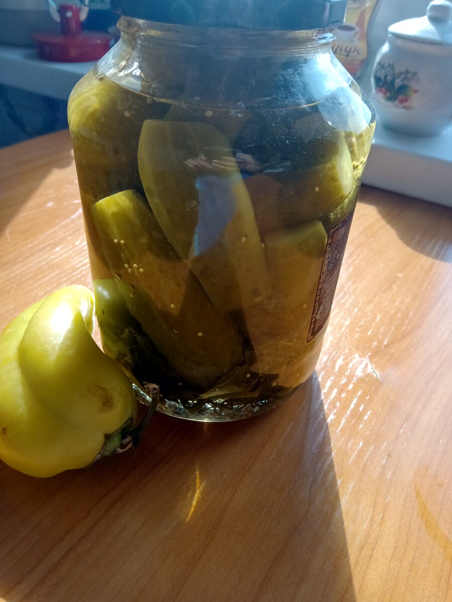 Делюсь с вами сегодня рецептом сладеньких огурчиков на зиму. Получаются хрустящие с не большой сластинкой. Я солю их в не больших банках, чтоб открыл и сразу как говорится съел. Огурчики лучше брать не очень большие. Для рецепта нам понадобиться: Сами огурчики 600 грамм. вода 0,5 литра, но это зависит от размера огурцов как плотно войдут в банку. хрен 2- 3 колечка корня. перец жгучий 1 колечко. чеснок 2-3 зубчика. перец горошек и душистый по 3-5 гор. веточки укропа 1-2 шт. лавровый лист 1 шт. сахар 5 ч. ложек. соль 1 ст. ложка. уксус 4 ст. ложек. Можно положить 0,5 моркови колечком, я не клала. Я еще добавляла семя горчицы 0,5 ч ложки. В стерилизованные банки плотно укладываем огурчики перекладывая чесноком, морковью, хреном и на дно кладем веточку укропа. Заливаем кипятком и оставляем на 5 минут. Тем временем готовим рассол: в воду добавляем соль и сахар, приправы и ждем закипания. Как только закипит снимаем с огня и добавляем уксус. С огурцов сливаем воду и заливаем нашим рассоло
