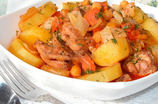 Помнится, в детстве самым любимым мясным блюдом было жаркое из курицы. До сих пор помню тот божественный вкус курочки с картошкой в густой подливке. Именно густая и насыщенная подливка делало это кушанье необычайно вкусным. Правда, чтобы приготовить жаркое по-домашнему, как готовили его наши бабушки, придется полдня проторчать на кухне, что в современной жизни непозволительная роскошь. Но есть одна маленькая хитрость, которая позволяет приготовить такое же вкусное, такое же ароматное и такое же насыщенное жаркое из курицы, но значительно быстрее. Итак, делюсь рецептом. Ингредиенты: (4 порции) Казанок или сковороду хорошо нагреваем на огне, наливаем немного растительного масла. Обжариваем кусочки курицы на довольно сильном огне, чтобы курочка подрумянилась. Жарить до готовности не нужно. 3. Жаркое - обжариваем курицу К обжаренной курице кладем мелко порезанный лук. Уменьшаем нагрев сковороды, чтобы лук тушился, а не жарился. 4. Жаркое из курицы - кладем лук Минут через пять, когда лук