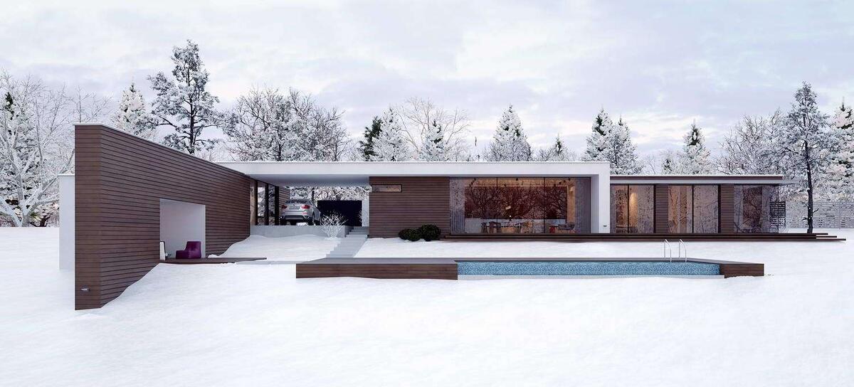 Стиль этого дома можно отнести к «экологическому минимализму». Место застройки находится в 15 минутах езды от Кишинева, в тихом и уединенном месте на возвышенности у реки. Одноэтажный дом с бассейном и террасой предназначен для семейного отдыха на природе, в окружении густой растительности с видом на реку. Со стороны главного фасада дом огражден забором, а внутренний фасад, напротив, открыт. Деревянная отделка фасада переходит в интерьер дома, что позволяет усилить связь экстерьера и интерьера. Архитектура: Дмитрий Петров, LINE architects