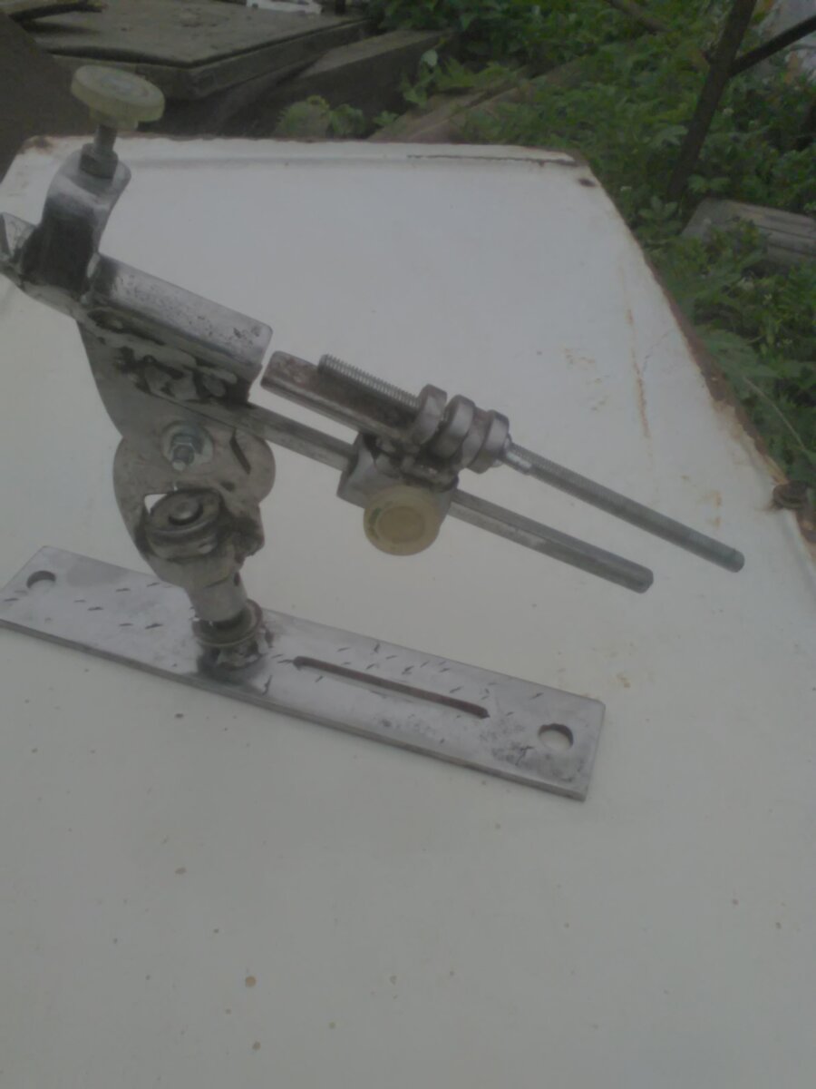 Мое приспособление для заточки сверл Я занимаюсь конструированием различных предметов и механизмов. В процессе работы приходится пользоваться сверлильным станком, шуруповертом со сверлами, дрелью. Сверла тупятся, и их приходится периодически затачивать. Вначале я пытался их точить на наждаке. Но, не имея опыта заточки сверл, я получал не качественную заточку. Углы заточки не соответсвовали нужным параметрам и сверло горело, но не сверлило металл. На просторах интернета я просмотрел всевозможные приспособления для заточки сверл и решил изготовить самостоятельно. За основу взял заводской образец. Что у меня получилось видно на фотографиях. Прошу прощения за качество фотографий. Поворотный узел изготовил из вала и втулки активатора стиральной машины советского производства типа «Вятка». Втулка изготовлена из латуни или бронзы, и вал сидит прочно, практически без люфта. Был у меня квадратный прут и втулка к нему. Из этого изготовил задний упор для сверла. Все детали делал вручную.
