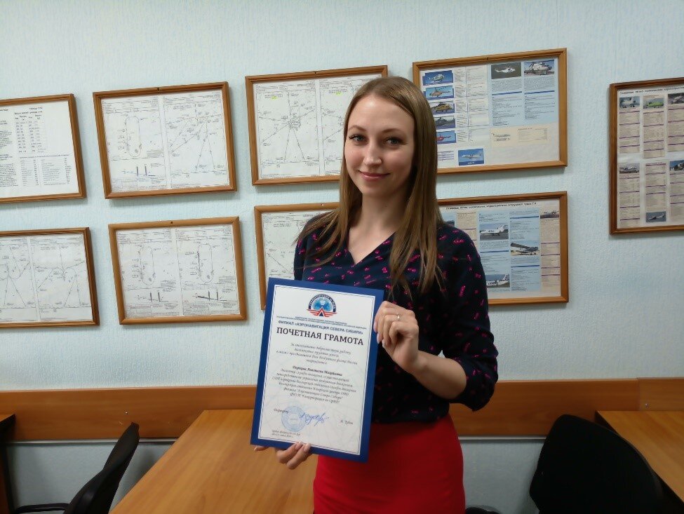 В Югорском центре ОВД филиала «Аэронавигация Севера Сибири» ФГУП «Госкорпорация по ОрВД» состоялось награждение сотрудников, приуроченное к празднованию Дня Воздушного флота России. За добросовестную работу и профессионализм благодарностями и почетными грамотами филиала «Аэронавигация Севера Сибири» награждены: - Анастасия Дорохова - диспетчер службы движения, осуществляющий непосредственное управление воздушным движением СДП;
