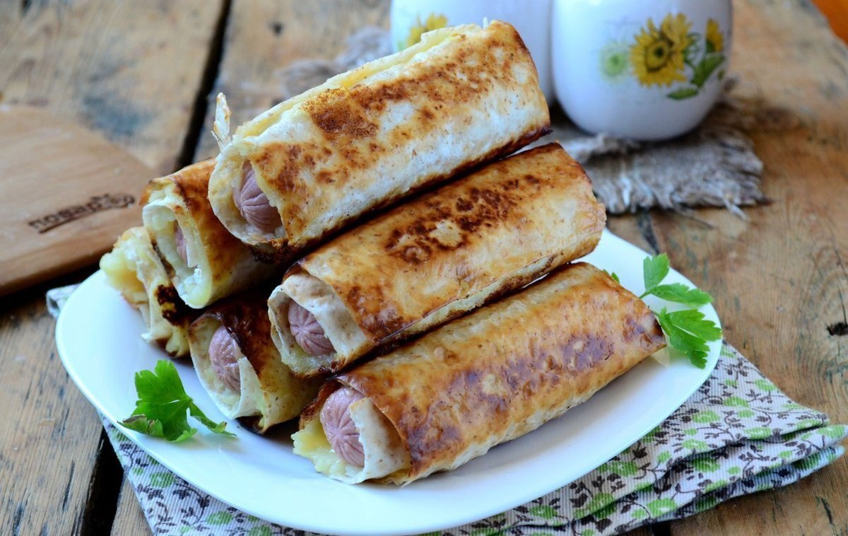 Сперва - недорогие ингредиенты,без них,возможно,не выйдет ничего,но кто вас знает: 🐌Лаваш - 2 листа 🐌Сосиски - 4 шт 🐌Сыр тостовый(ну чеддер) - 1 упаковка (там,кажется,8 ломтиков) 🐌Масло растительное - 1 ст. ложка Ехала: 🔹Листы лаваша разрежьте пополам. Должно получиться 4 полоски, в которые вы сможете завернуть драгоценные сосиски, но до этого ещё не дошло 🔹По всей длине сосисок сделайте где-то 5 неглубоких поперечных надрезов, так будет вкуснее, поверьте 🔹Смажьте сковороду растительным маслом и разогрейте на среднем огне (электронная плита- 5 или 6(пометка для рукожопиков,вроде меня)) 🔹В разогретую сковороду выложите сосиски и обжарьте 4-5 минут с двух сторон, чтобы они прогрелись и немного подрумянились :3 🔹 Вытащите пластинки сыра из упаковки. На один край полоски лаваша выложите 2 пластинки сыра(думаю, два хватит) 🔹На сыр выложите обжаренную сосиску и сверните лаваш в рулетик (И ,пожалуй,надо будет повторить процесс с оставшимся лавашом, сосисками и сыром,а куда это дева