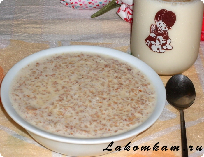 Ингредиенты: гречневая крупа — пол стакана; молоко коровье — 1 стакан; сливки жирные — 1 стакан; сахарный песок — 1,5 столовых ложки.