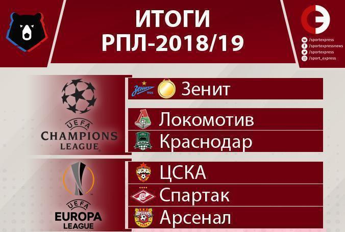 Сезон 2018/2019 в Российской футбольной Премьер-Лиге подошел к концу. Определился чемпион и призеры. Разыгран кубок страны. Стало известно, какие российские команды выступят будущей осенью в турнирах UEFA. В рейтинге УЕФА на данный момент Россия расположилась на шестой позиции. Это влияет на то, сколько российских клубов в еврокубках будут играть. Усилия, приложенные командами в течение последних трех сезонов (именно так формируется рейтинг), не позволили догнать Францию. Но и без этого Россия в еврокубках представлена достаточно широко. Арсенал" оказался худшим из наших дебютантов в еврокубках: – ноль забитых мячей – два поражения – разгром в концовке матча на выезде – нелучшая игра на фоне соперника в трех из четырех таймов – вылет в первом же раунде Не получилось вообще ничего, кроме как привезти еврокубковый матч в Тулу. При этом весной "Арсенал" был достаточно хорош: длительные сухая и беспроигрышные серии в чемпионате, победы над столичными топ-клубами, яркий и разумный фут