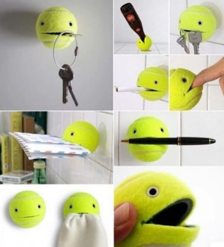 5 простых лайфхаков для жизни 1. Разрезанный теннисный мяч с приклеенными глазами от детской игрушки можно использовать как оригинальный держатель для чего угодно. 2. При помощи самой обыкновенной пластиковой бутылки можно быстро разделить яичные желтки и белки. 3. Если завернуть в полиэтилен или скотч «хвосты» бананов, то фрукты будут оставаться свежими гораздо дольше 4. Если в кипящую воду добавить небольшой кусочек лимона или чайную ложку соды, то сваренное в такой воде яйцо будет очень легко очищать. 5. Обувь станет белоснежной, если почистить ее пастой, изготовленной самостоятельно из смеси стирального порошка и пищевой соды (в равных пропорциях). Результат почти наверняка превзойдет ожидания.