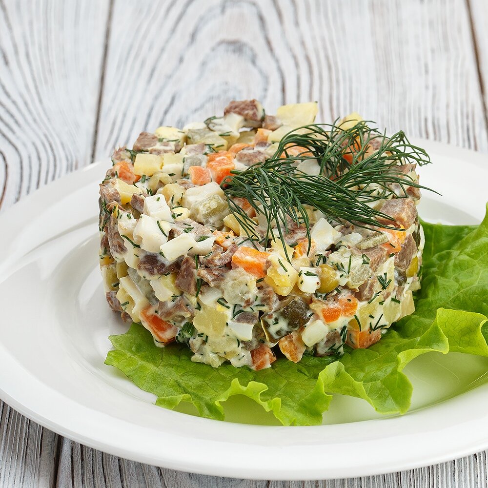 Ингредиенты: В результате получим примерно 700 грамм салата. Из посуды понадобится: Приготовление: Салат готов. Накроем крышкой или фольгой салат и выдержим в холодильнике в течение двух часов, чтобы он пропитался.