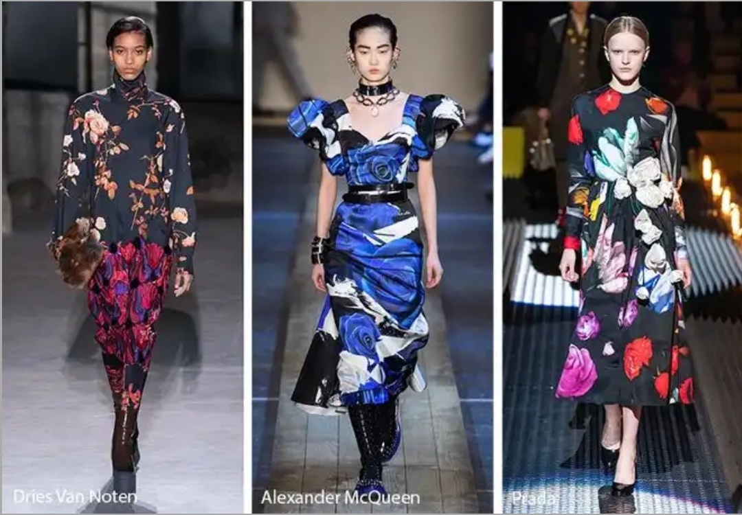 Разнообразие модных принтов в осенне-зимнем сезоне 2019-2020 приятно удивляет. Дизайнеры известных модных брендов постарались использовать все любимые принты холодного сезона и даже продлить жизнь нескольким популярным летним трендам. Цветочные принты, клетка, пейсли и многие другие принты украшают новые коллекции именитых дизайнеров. Давайте посмотрим, как использовать принты в осенне-зимнем сезоне. Гипер-реалистичные цветочные принты Женственные цветочные принты обычно украшают подиум в весенне-летнем сезоне. Поэтому увидеть цветы в новом сезоне было достаточно неожиданно. Но если весной модные дома вдохновляются пастельной цветовой палитрой, то для осени выбраны темные цвета. Особенно пользуются популярностью цветы на черном фоне. Эта тенденция прослеживается уже несколько сезонов. Есть и еще одна особенность использования цветочных принтов в осенне-зимнем сезоне 2019-2020. Речь идет об изображении цветов в гипер-реалистичной форме. Особенно хорошо эту тему раскрыл модный дом