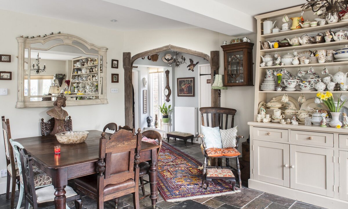 Мебель на кухню искали долгое время. Блошиные рынки, винтажные центры и, конечно, eBay. Вообще, хозяева обожают античный декор и коллекционируют множество вещей, от которых обычные жители уже давным-давно бы избавились: